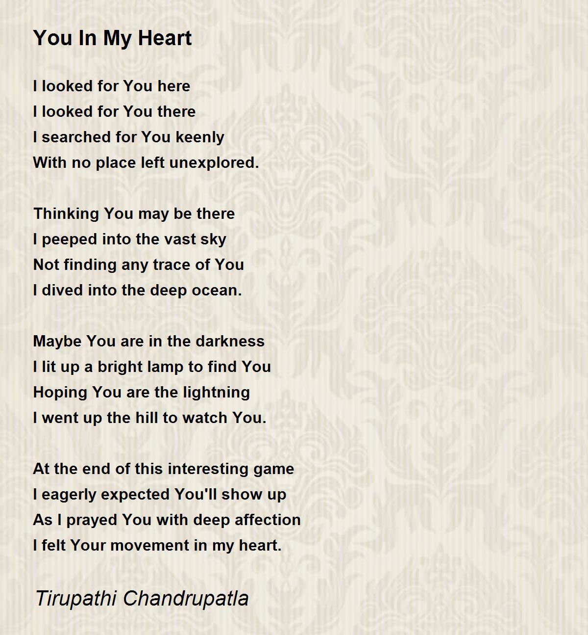 Yes, when the One you are searching far and wide Is just so close, by your very side, such a lovely prayer can happen.