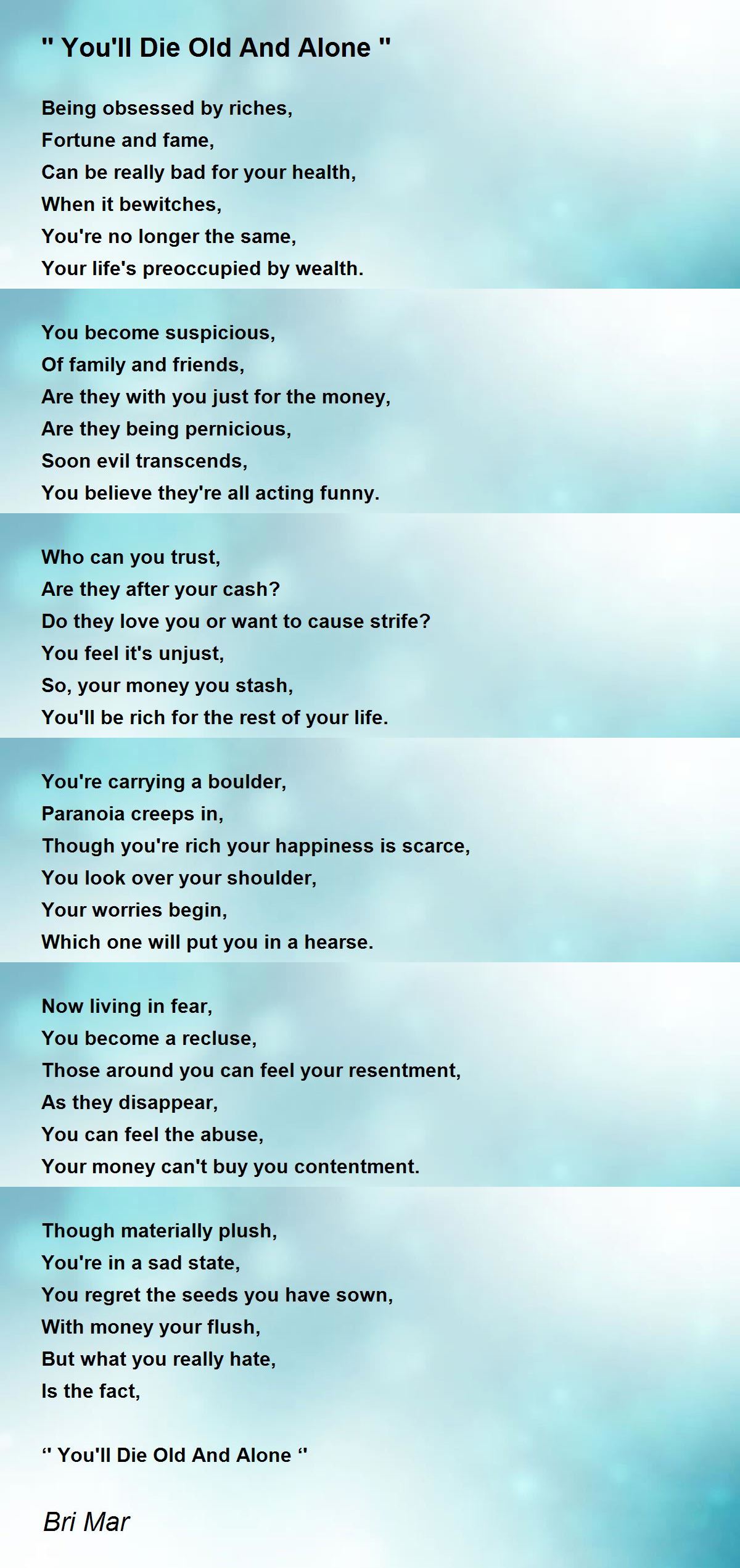 ‘' You'll Die Old And Alone ‘'