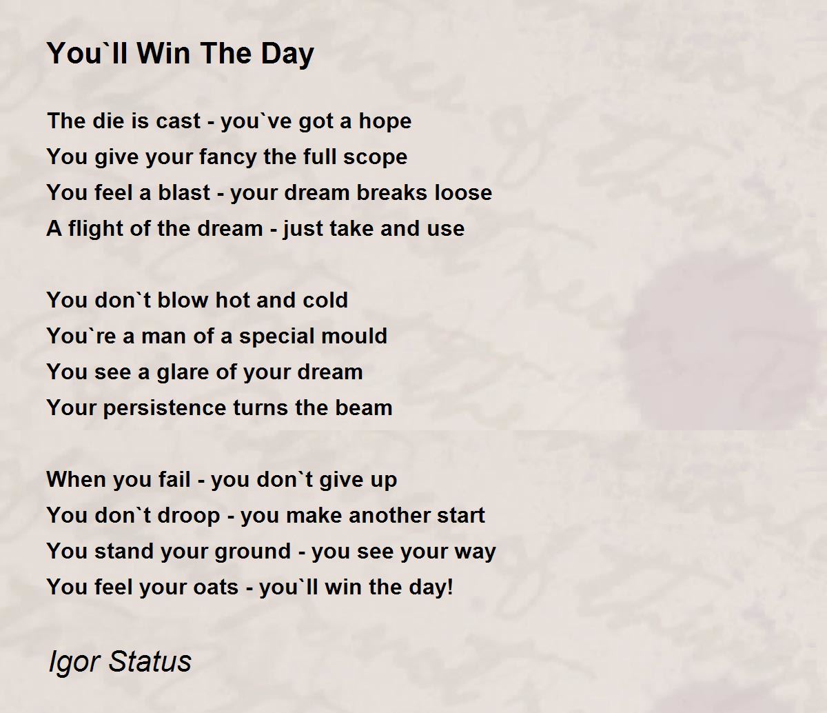 You feel your oats - you`ll win the day!