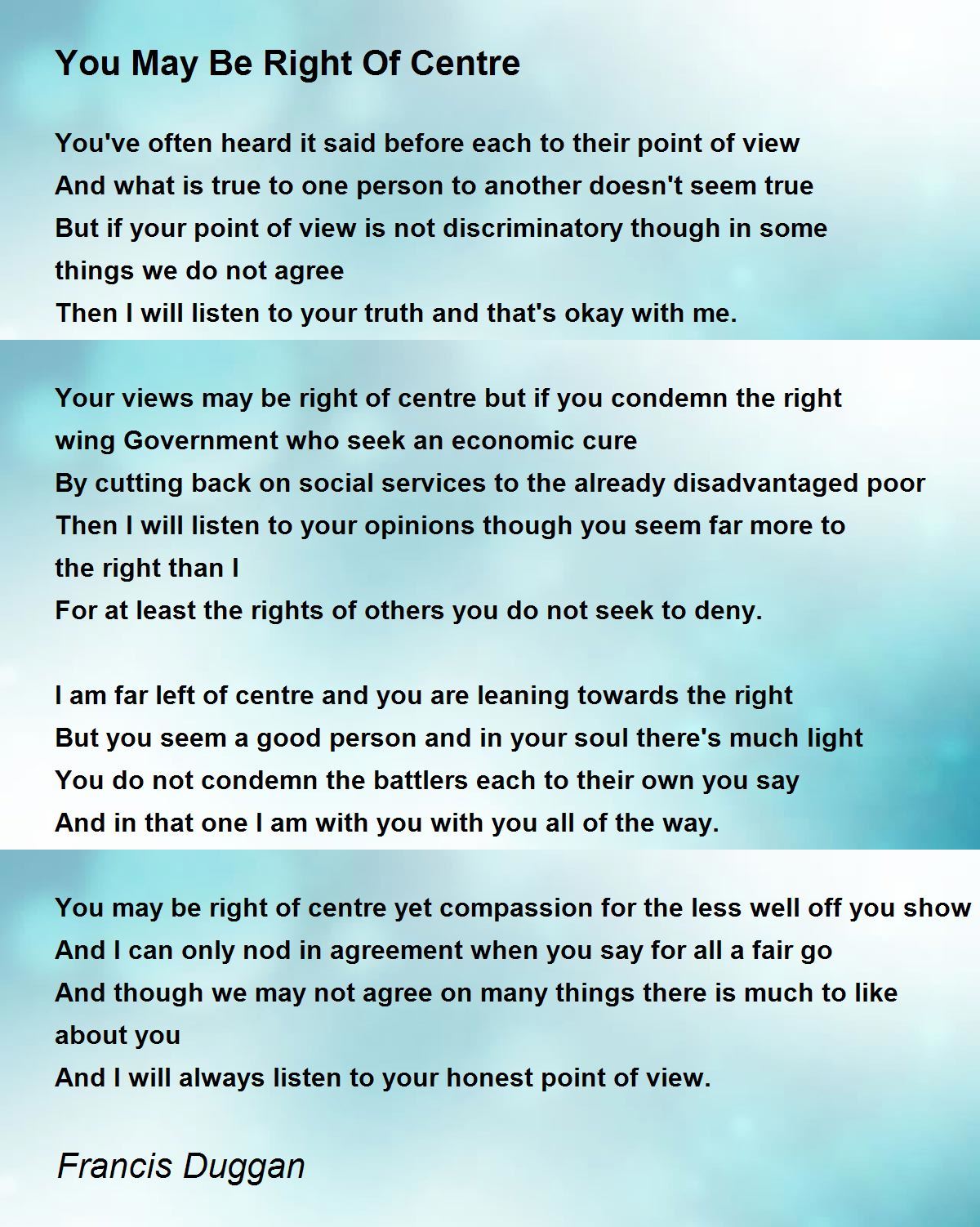 Your views may be right of centre but if you condemn the right wing Government who seek an economic cure