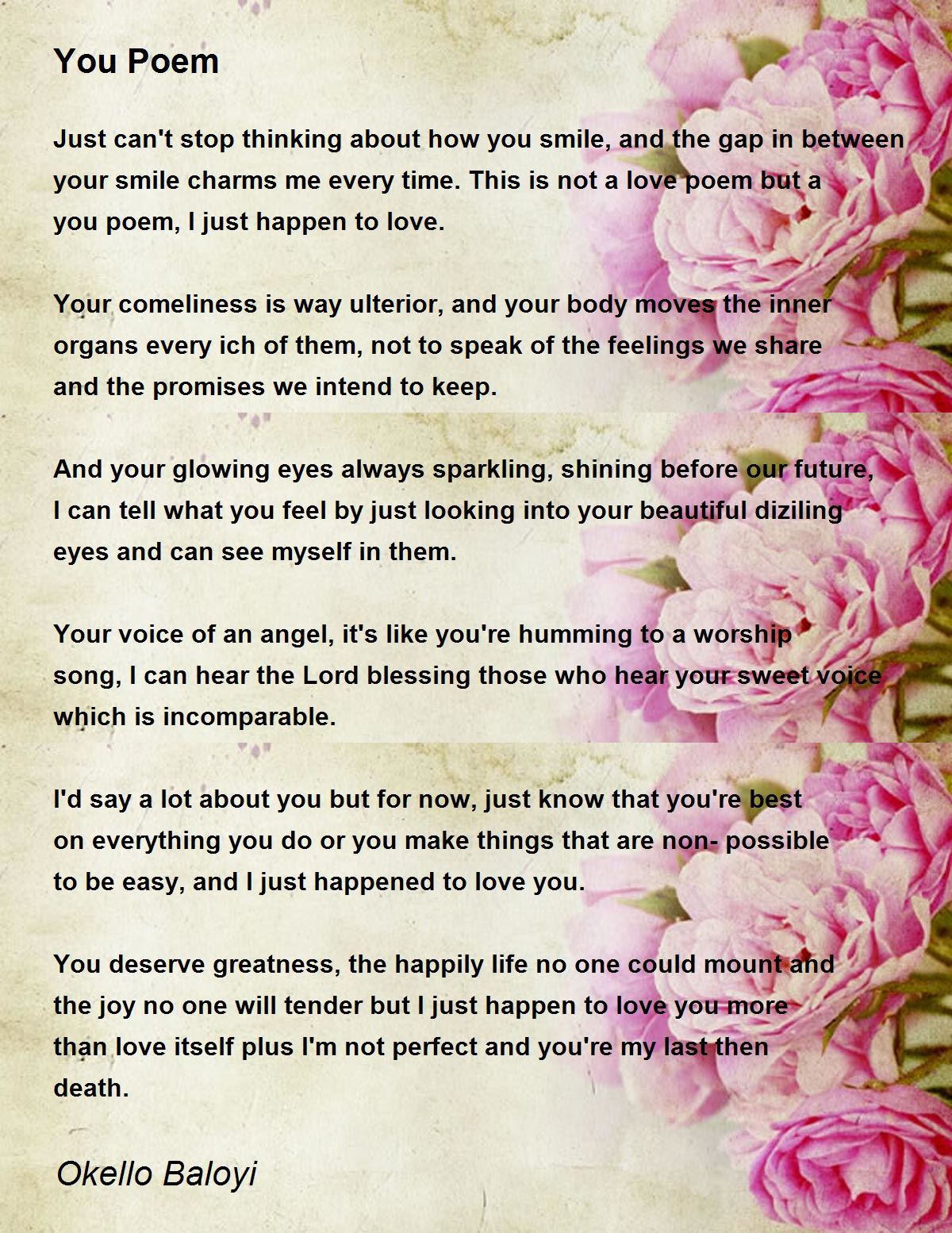 Just can't stop thinking about how you smile, and the gap in between your smile charms me every time. This is not a love poem but a you poem, I just happen to love.