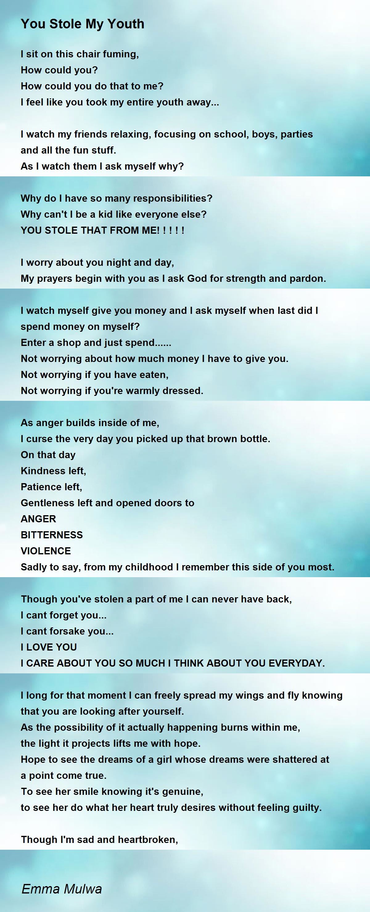 I feel like you took my entire youth away...