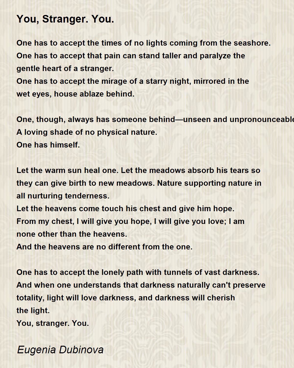 One has to accept that pain can stand taller and paralyze the gentle heart of a stranger.