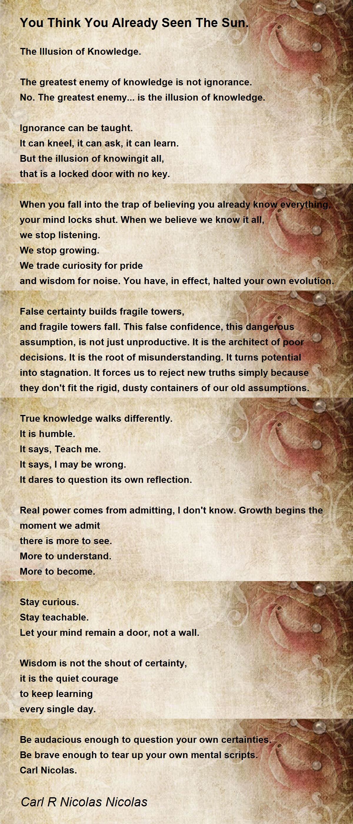 When you fall into the trap of believing you already know everything, your mind locks shut. When we believe we know it all,