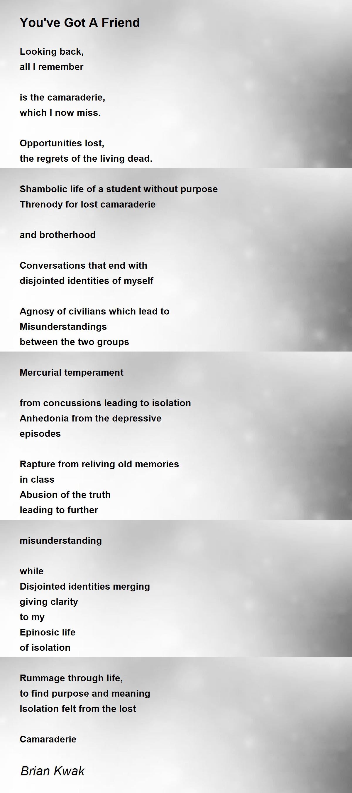 Write comment. Such a nice poem, Brian K. Read my poem, Love and Iust. Thanks