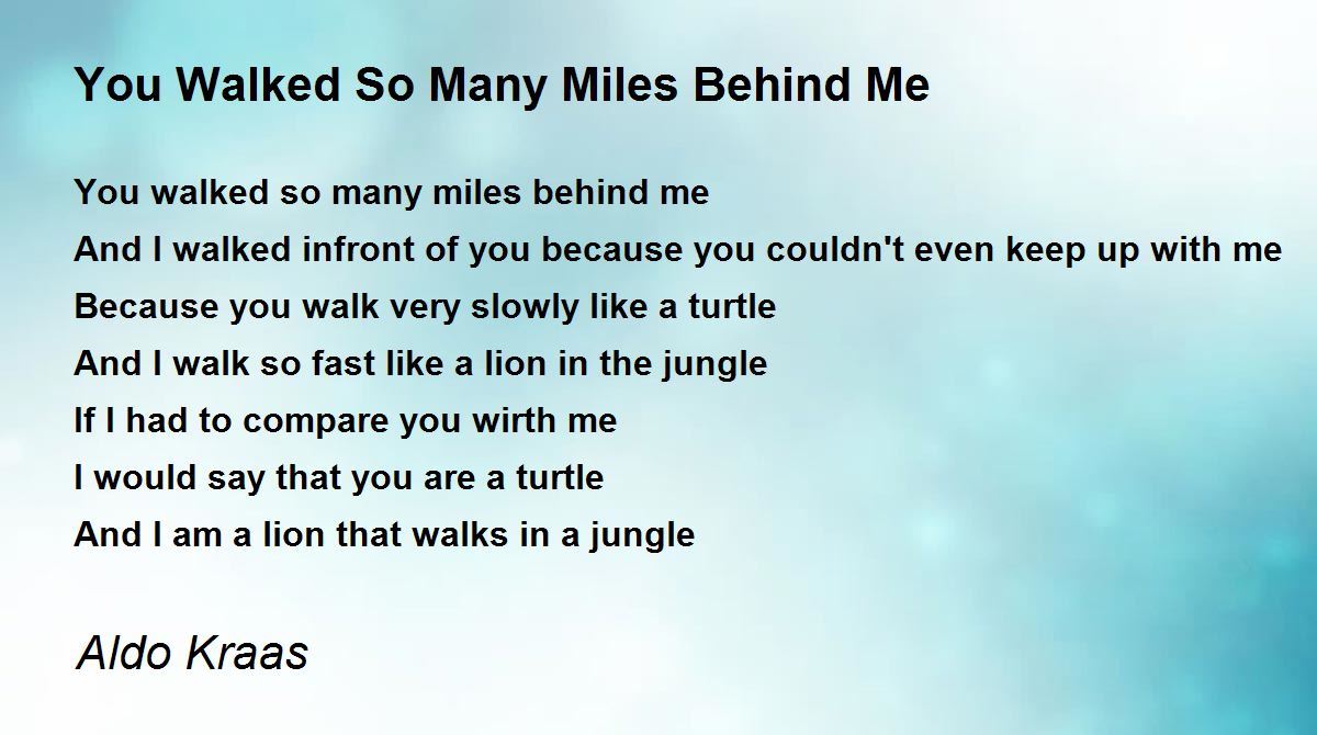 You walked so many miles behind me