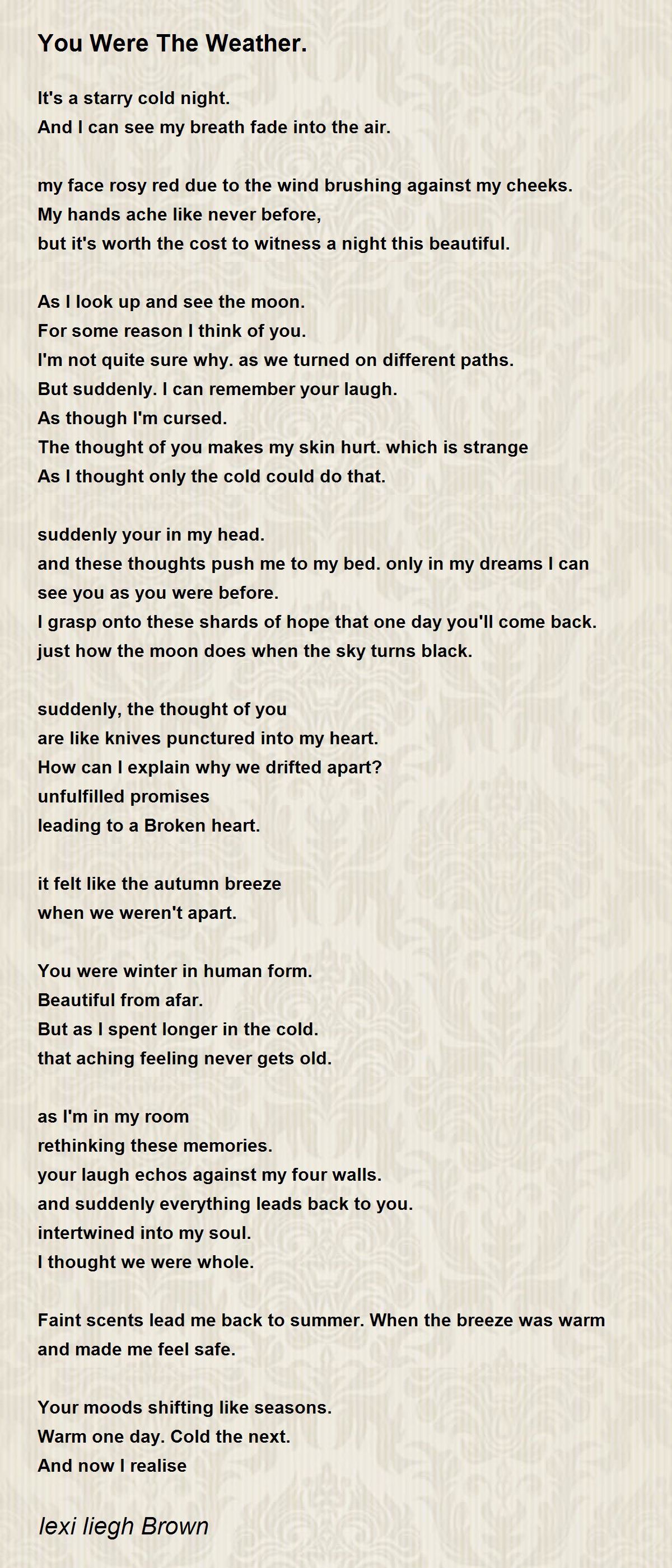 so now I realise. You and the weather are the same.