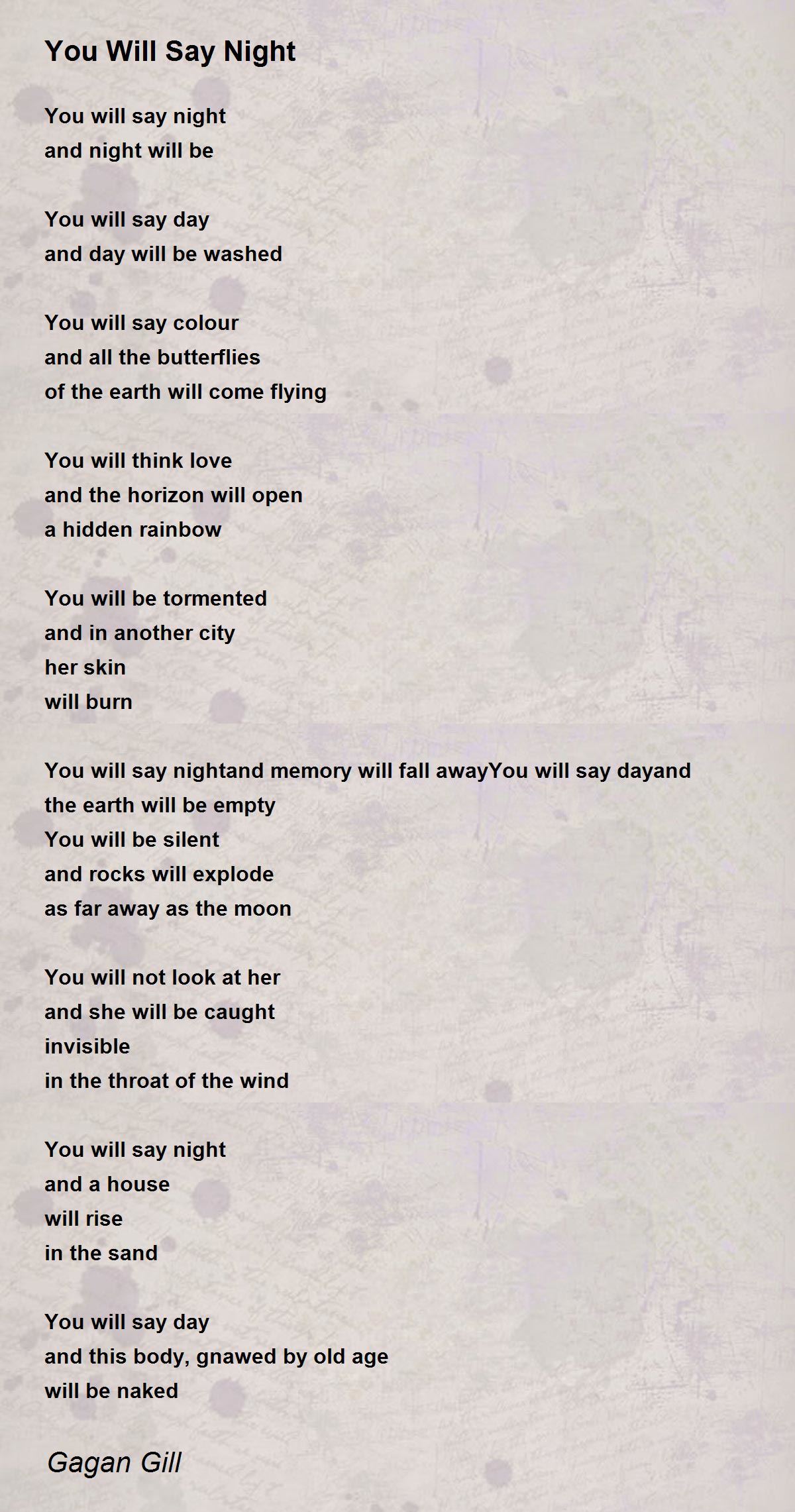 You will say nightand memory will fall awayYou will say dayand the earth will be empty