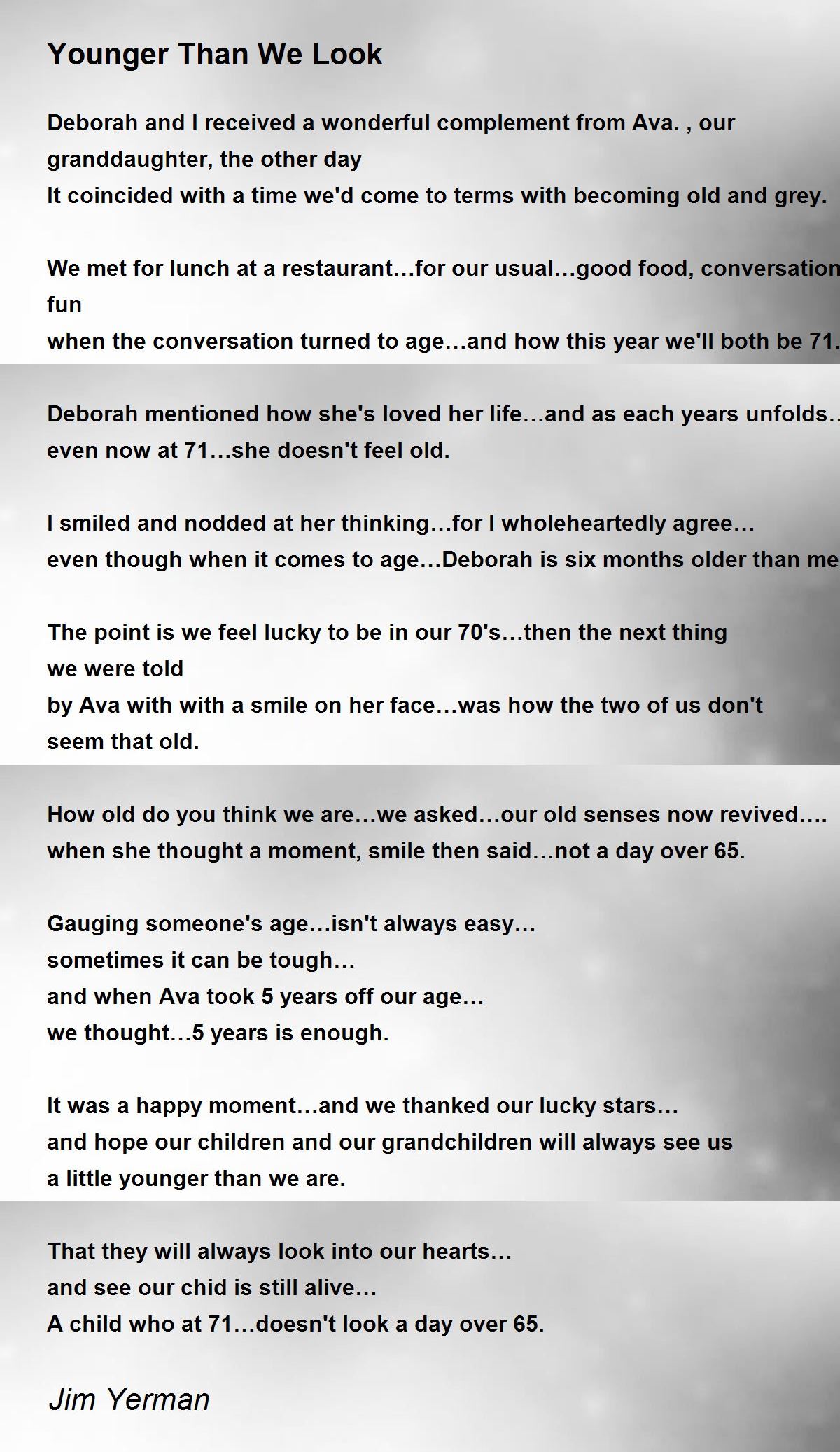 by Ava with with a smile on her face…was how the two of us don't seem that old.