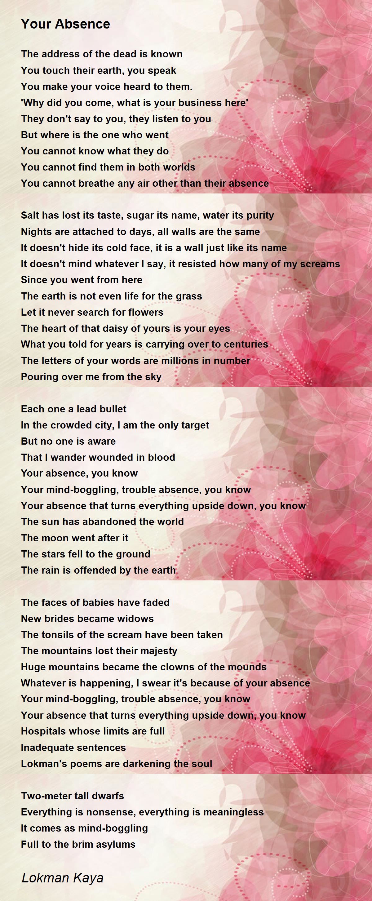 Your absence is hunger, your absence is cold