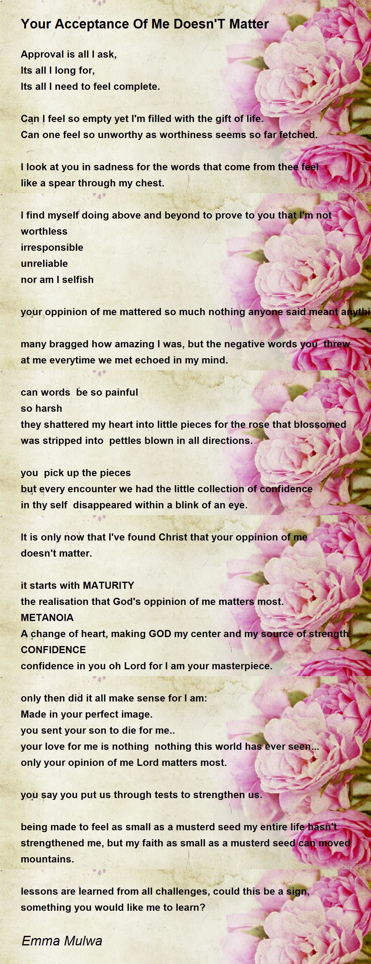 It is only now that I've found Christ that your oppinion of me doesn't matter.