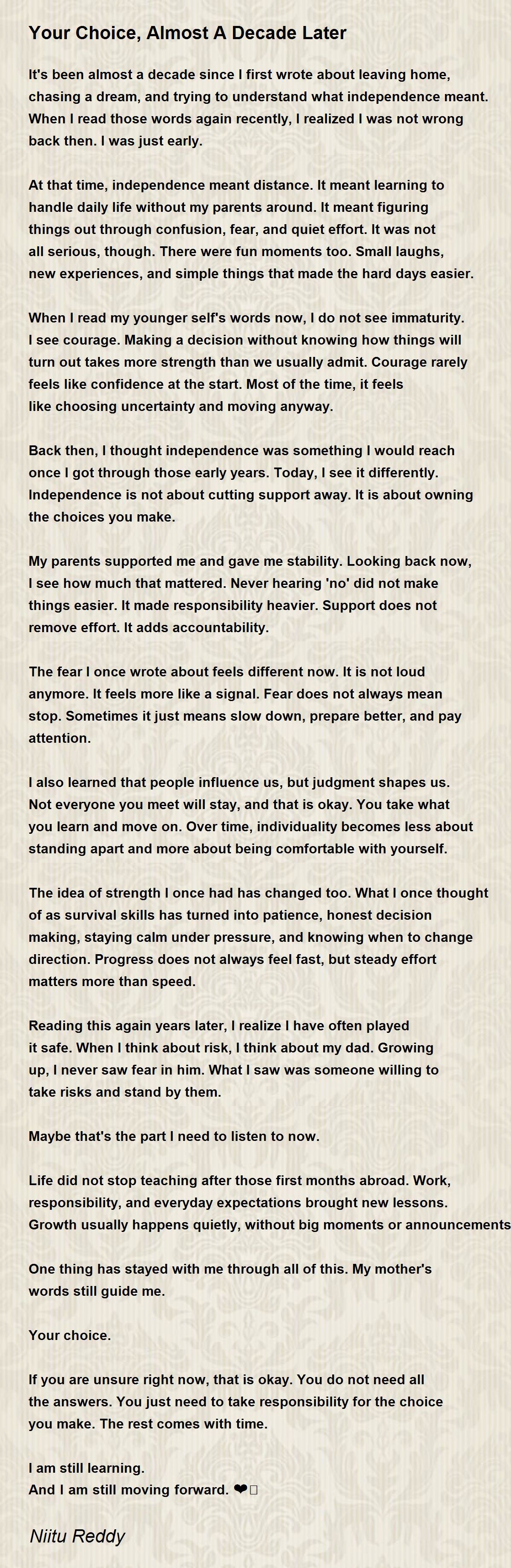 When I read my younger self's words now, I do not see immaturity. I see courage. Making a decision without knowing how things will turn out takes more strength than we usually admit. Courage rarely feels like confidence at the start. Most of the time, it feels like choosing uncertainty and moving anyway.