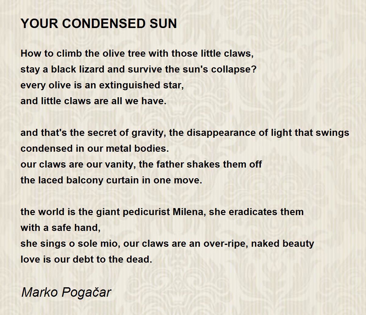 she sings o sole mio, our claws are an over-ripe, naked beauty