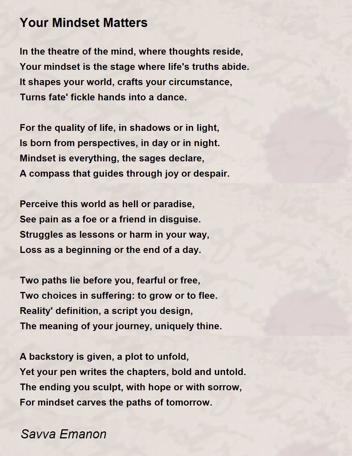 For mindset carves the paths of tomorrow.