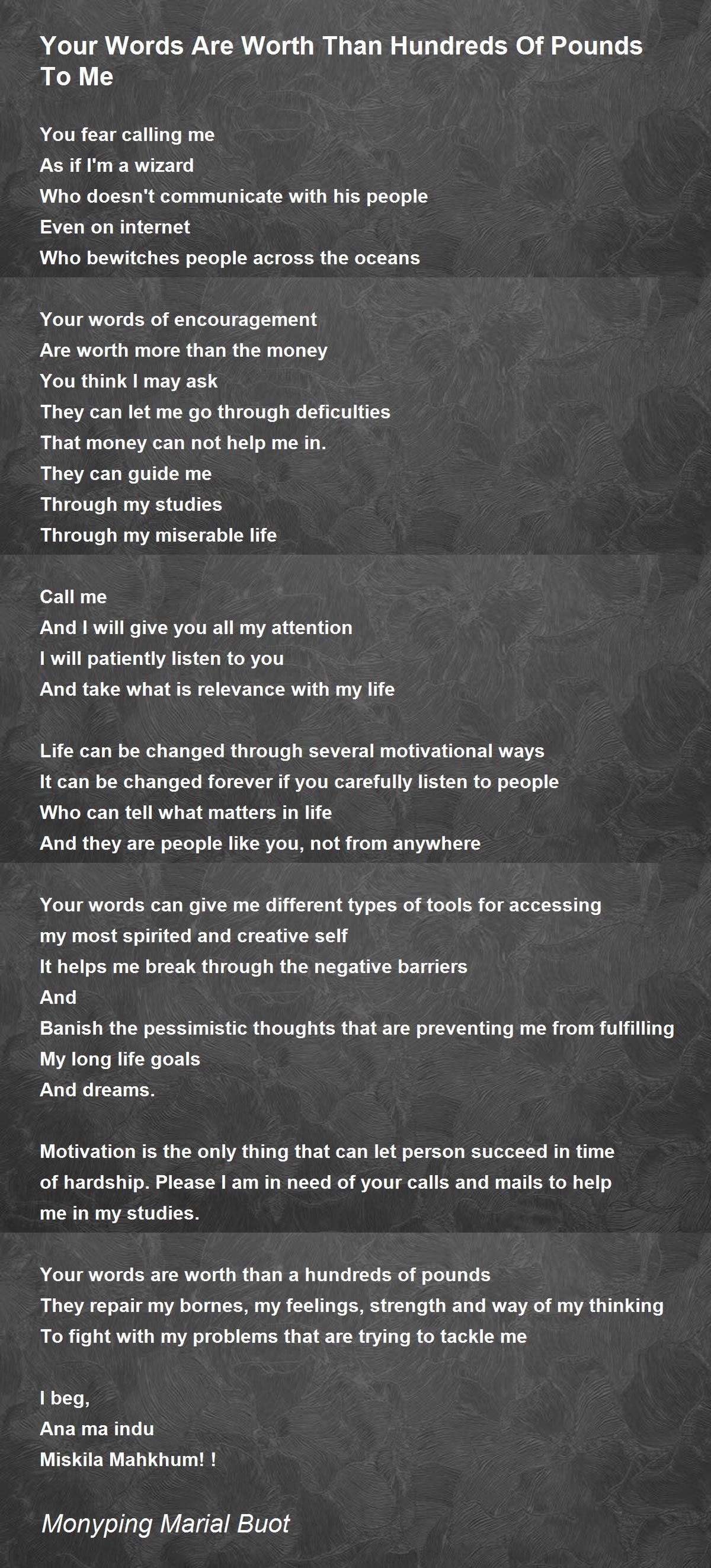 Your words are worth than a hundreds of pounds