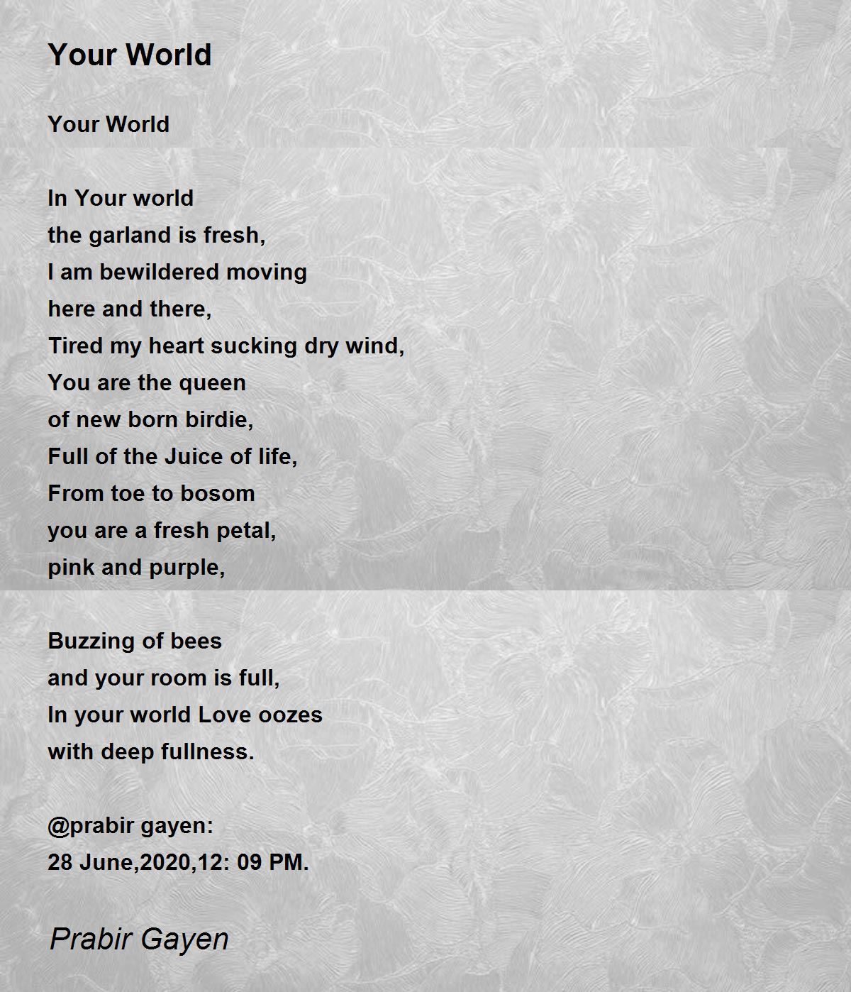 In Your world the garland is fresh, I am bewildered moving here and there.." "