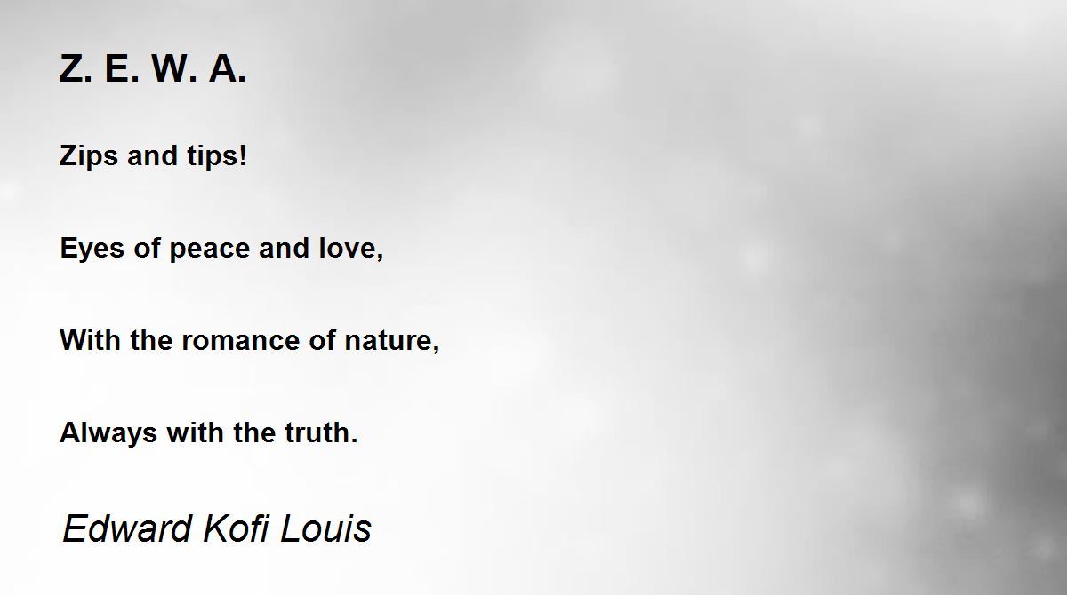 Zips and tips! Eyes of peace and love, With the romance of nature, Always with the truth.