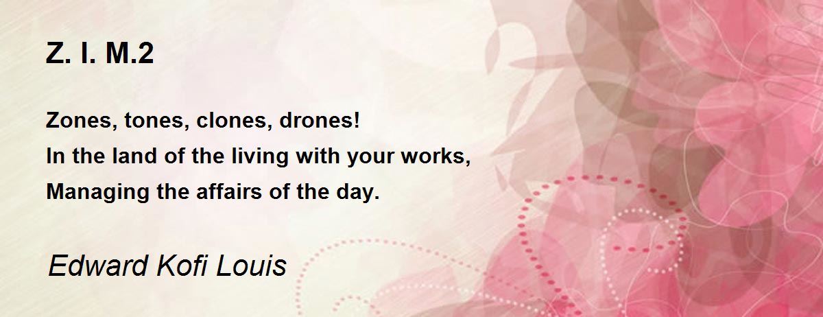 Zones, tones, clones, drones! In the land of the living with your works, Managing the affairs of the day.