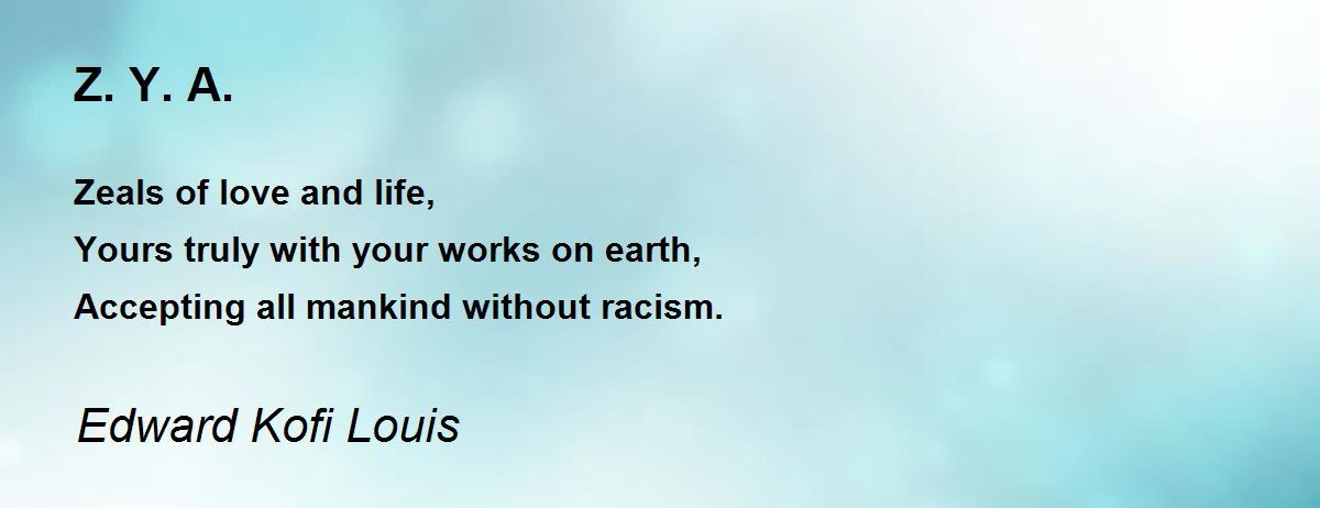 Zeals of love and life, Yours truly with your works on earth, Accepting all mankind without racism.