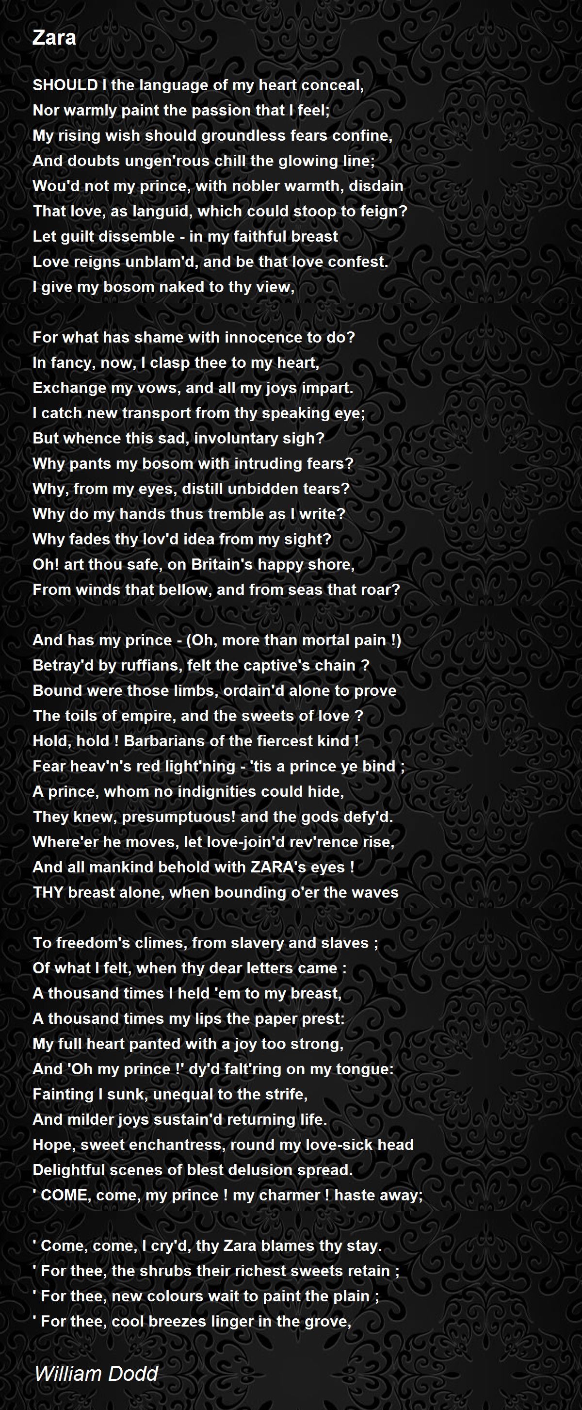 Last night - but why, ah ZARA! why impart,