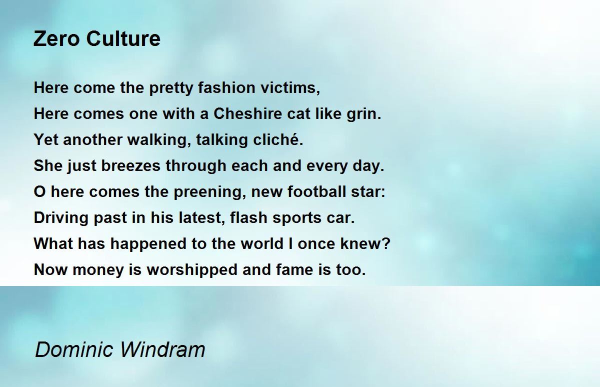 Another well written cutting and most biting truth on the culture of 'celebrity'. And all its crass vanity and unpleasant baggage. Louis Vuitton bling bling baggage of course. Thank you Dominic and 5 stars for delivering once again the poetry goods, warts and all. Take care and I wish you well.