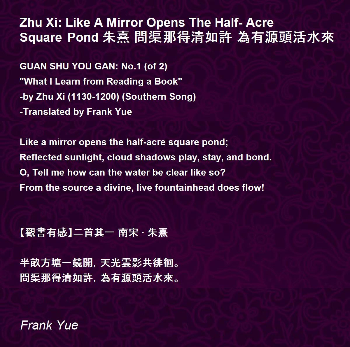 半畝方塘一鏡開,天光雲影共徘徊。