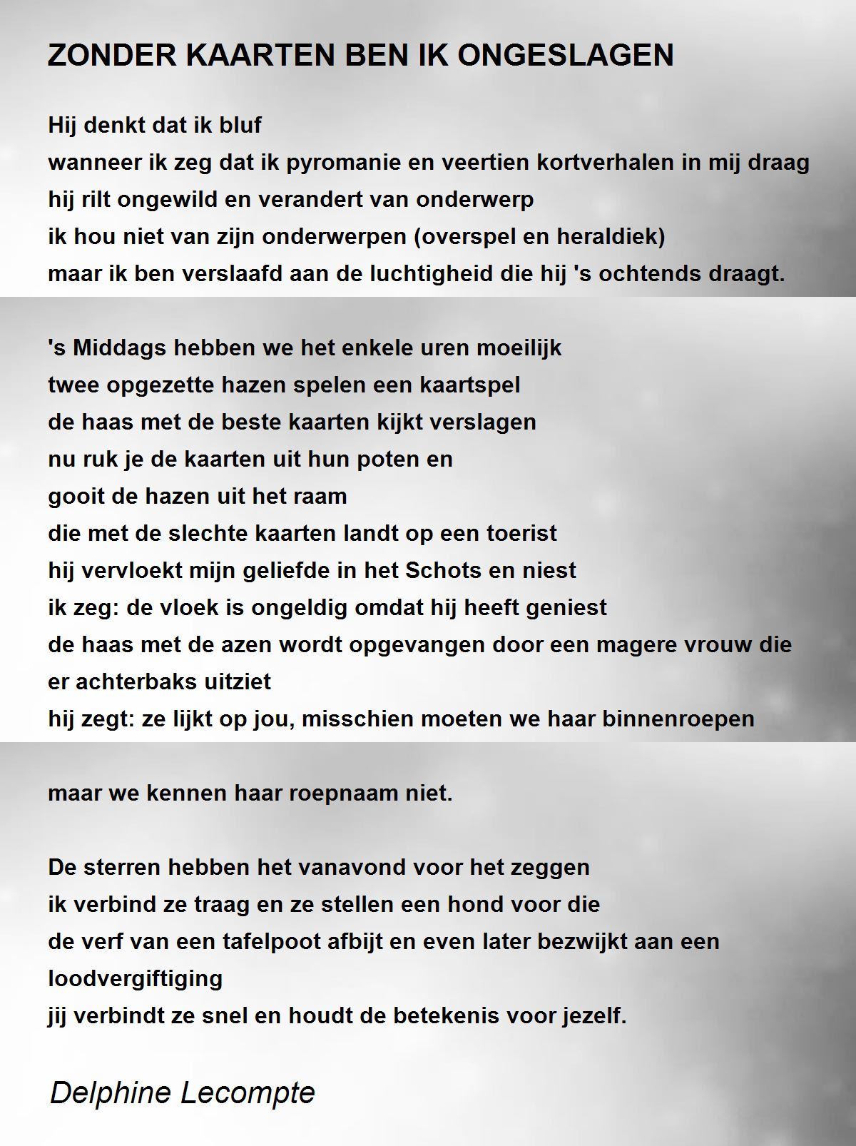 de haas met de beste kaarten kijkt verslagen