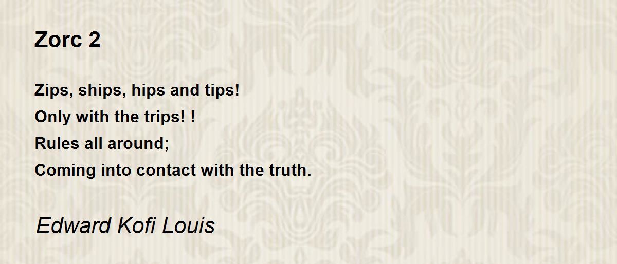Zips, ships, hips and tips! Only with the trips! ! Rules all around; Coming into contact with the truth.
