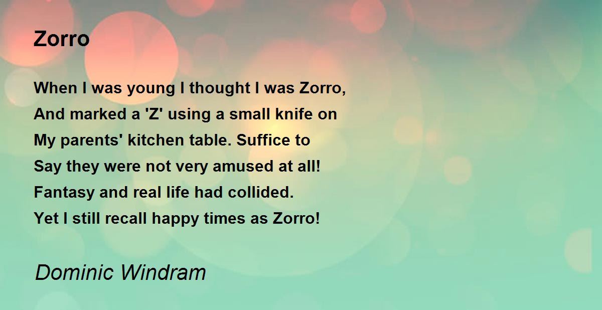 Yes I remember the T.V series well...those were the days! Perhaps I could be Zorro on poemhunter rather than plain old Dominic Windram.
