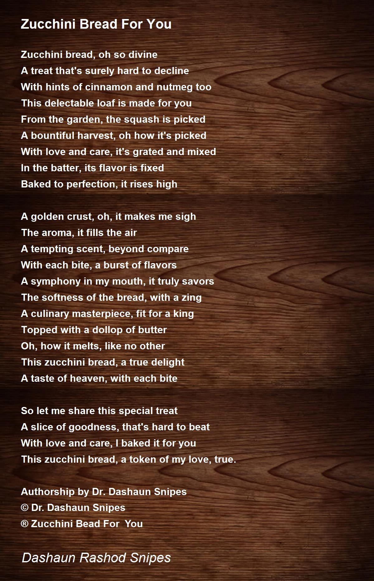 This zucchini bread, a token of my love, true.