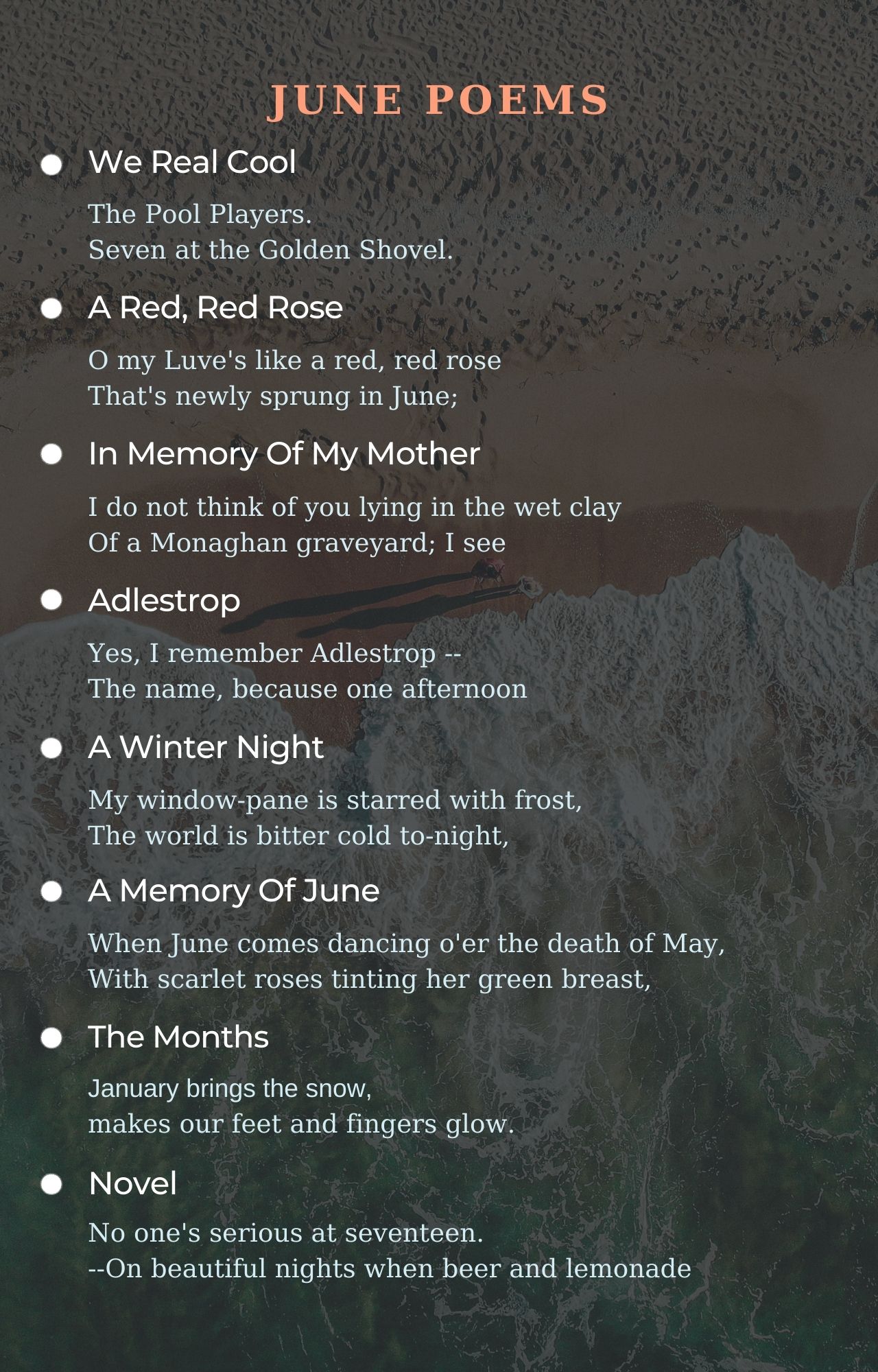 June poems from famous poets and best beautiful poems to feel good. Best june poems ever written. Read all poems about june.