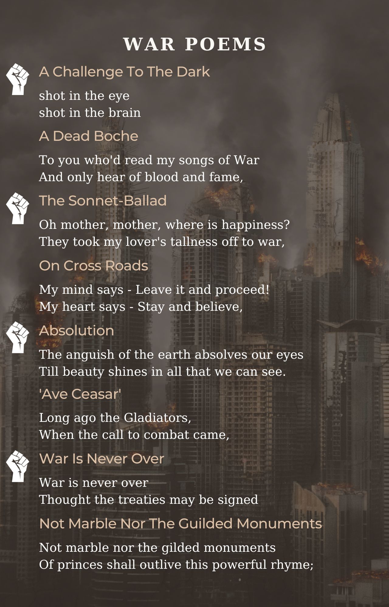 War poems from famous poets and best beautiful poems to feel good. Best war poems ever written. Read all poems about war.